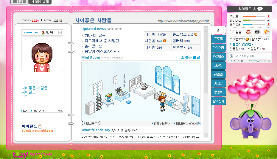 이 문서는 2021년 10월 5일 (화) 19:25에 마지막으로 편집되었습니다 싸이월드. 싸이월드는 개인이 직접 운영하고 꾸밀 수 있는 개인의 블로그 격인 미니홈피와 클럽 등의 형태로 서비스가 제공된다.